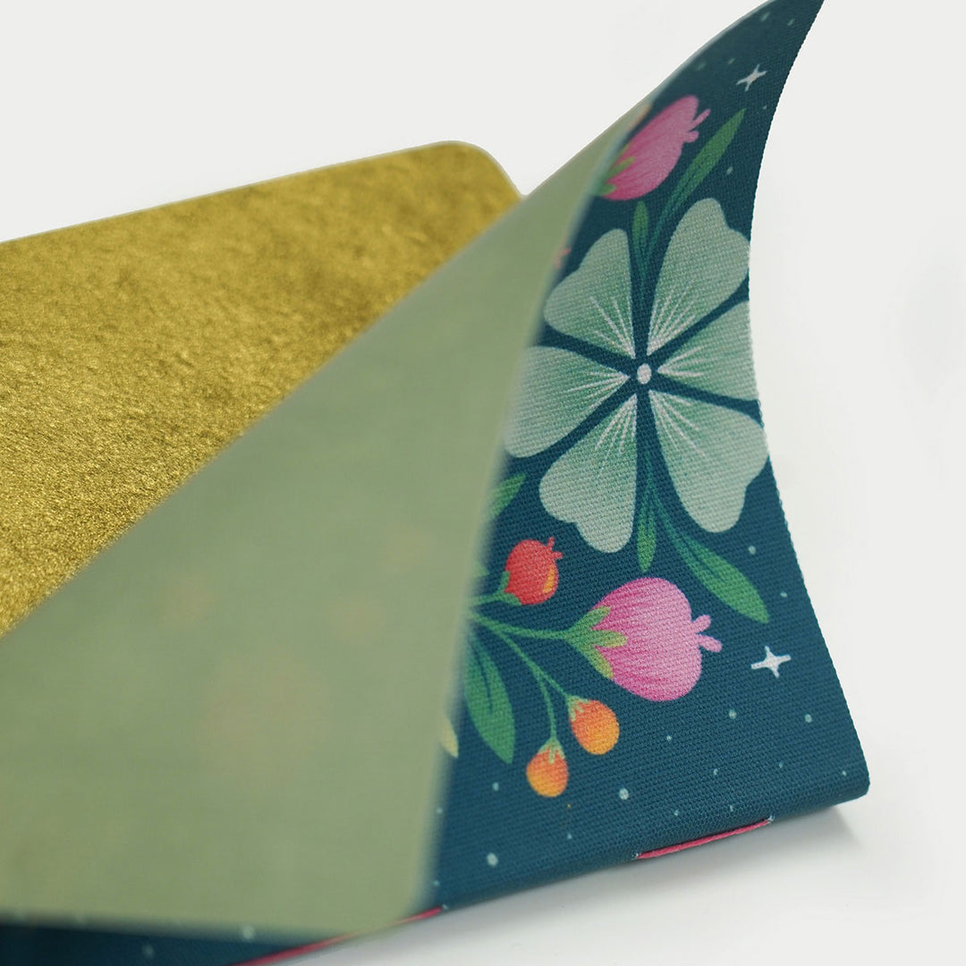 - Printed solid gold ink on handmade paper