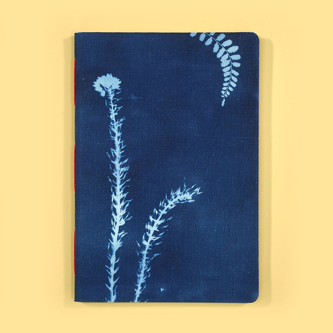 The Filia cyanotype collection was created by French artist Sarah Lanzi. Each notebook is made with cover fabric that was upcycled by Sarah, printed with objects using the ancient cyanotype printing method. Some of the designs were scanned and made into Billfold wallet covers, a Dapper Notes experiment.