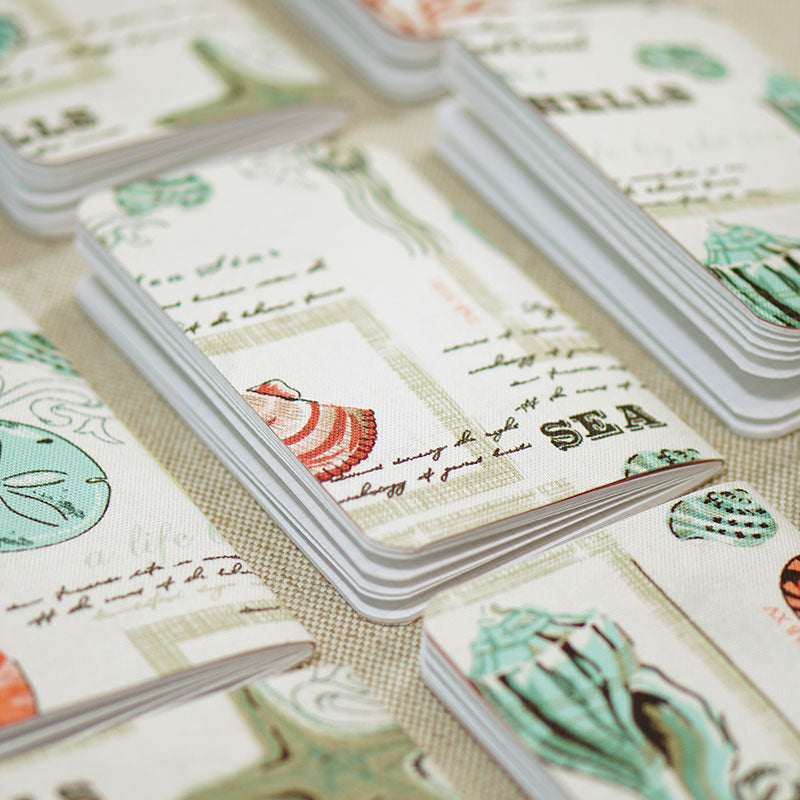 Every notebook cover is made from two materials: a good looking fabric on the outside backed by book cloth inside.