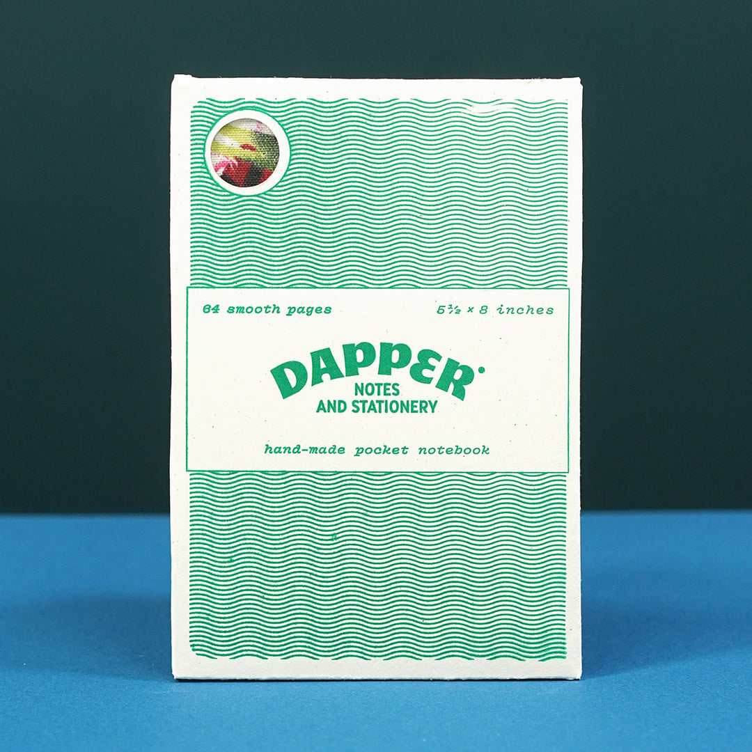 Every Dapper Notes notebook is made by hand, from scratch using a variety of materials including: a fabric cover that's bound to bookcloth, a decorative end-sheet, all sewn with waxed thread. Watch this video to see how they're made, step by step.