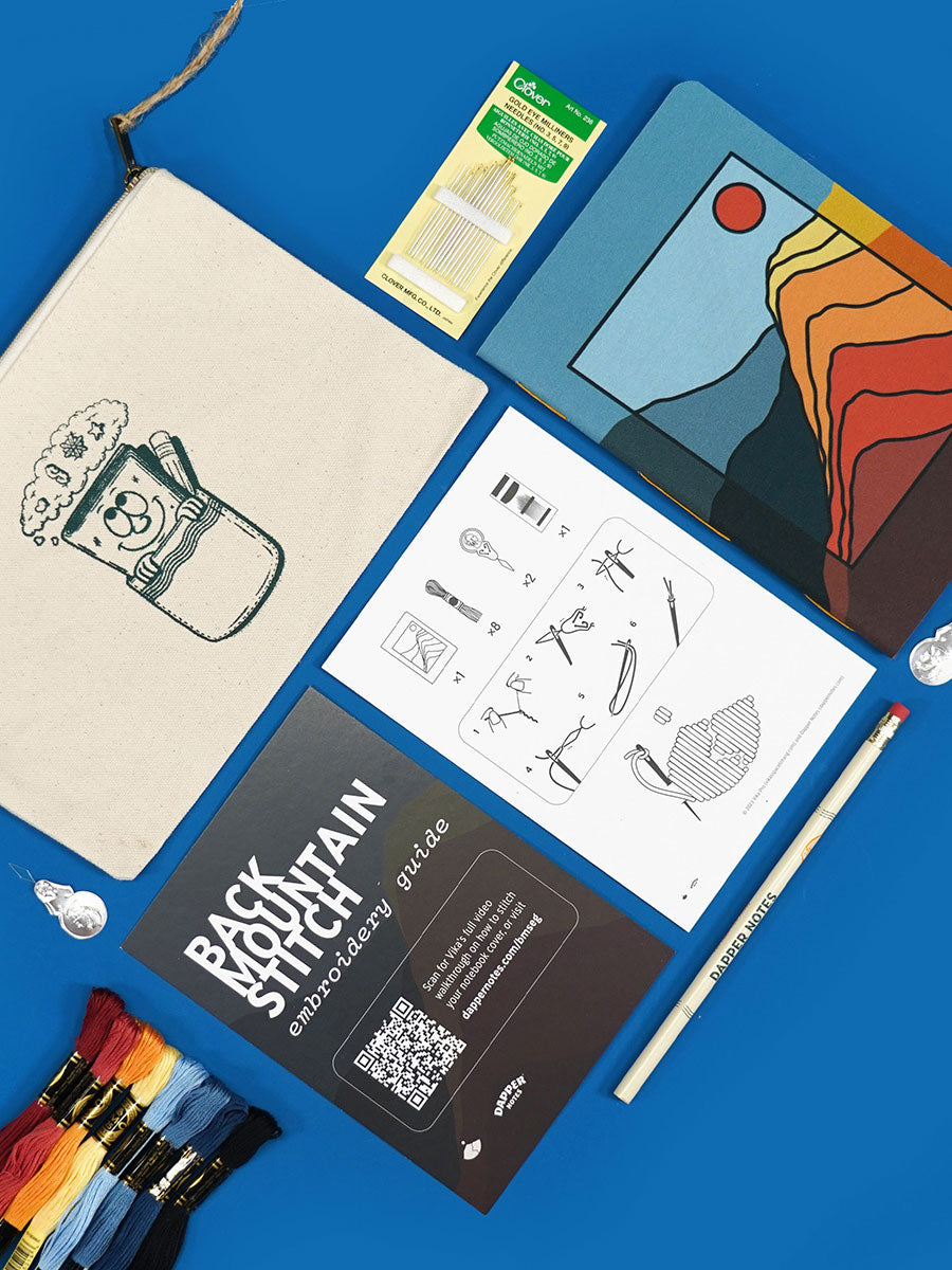 This special kit was created with embroidery artist Vika Pro. It's the very first interactive Dapper Notes notebook cover, and this kit comes with everything you need for hours of soothing embroidery. Makes a great gift for yourself, or your favorite creative person.
