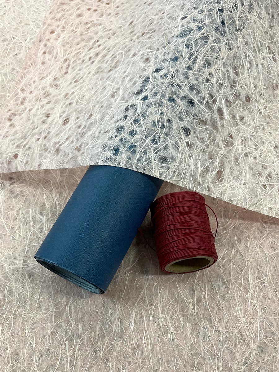 The notebook cover is made using a very thin fabric to make for easy stitching, and includes two embroidery projects with a unique design on each side. Inside the notebook you'll find a fantastic endsheet made in Japan from 100% manila hemp. To form its distinctive lace pattern, the long, heavy fibers are separated by water falling on the newly-formed sheets to create holes within the paper. The pages inside are blank on the left and dot grid on the right, perfect for planning your next embroidery pattern.