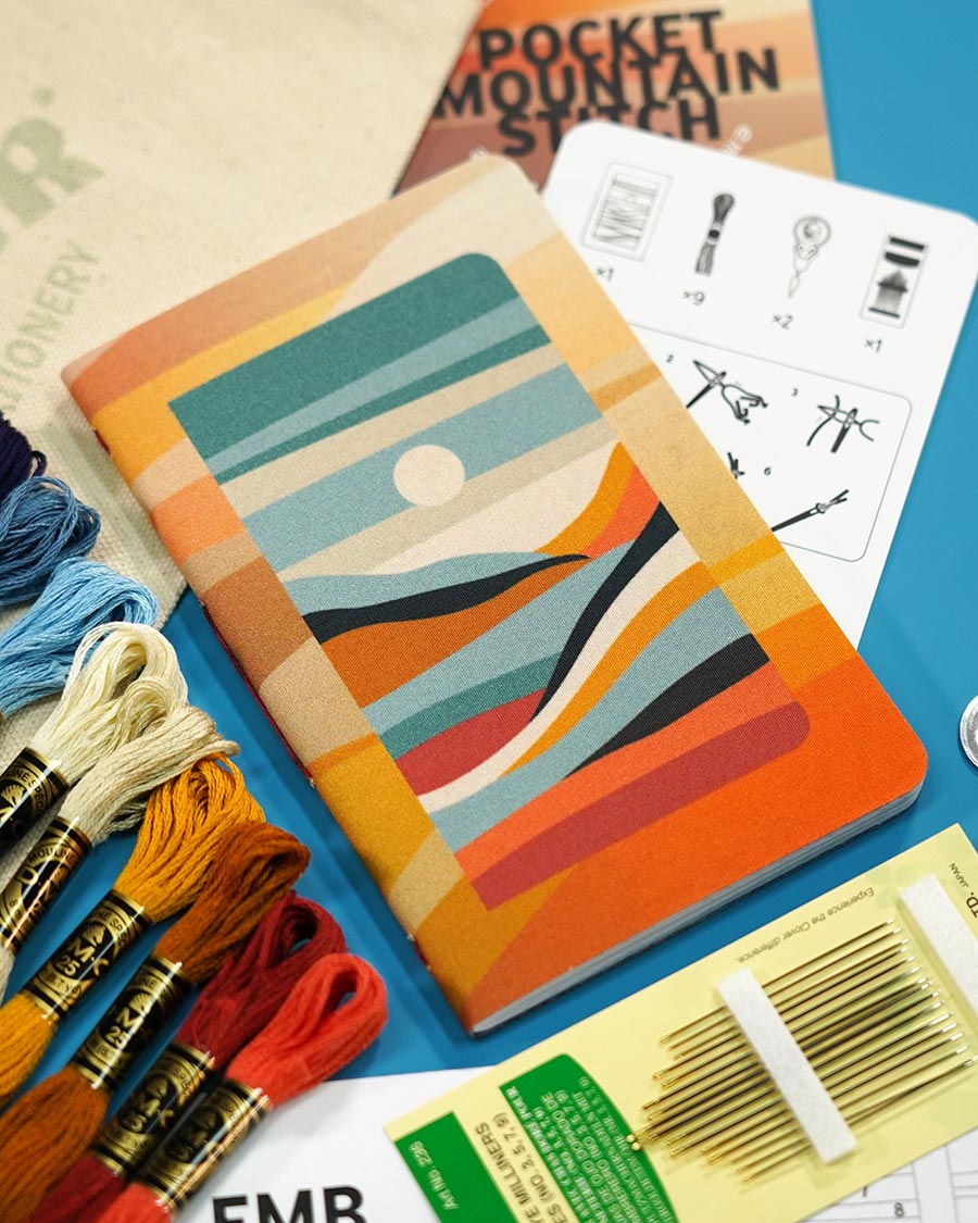 "Pocket mountain stitch" is a play on "back stitch", which is an embroidery term for a specific stitching style. We hope this kit inspires you to create many wonderful things.