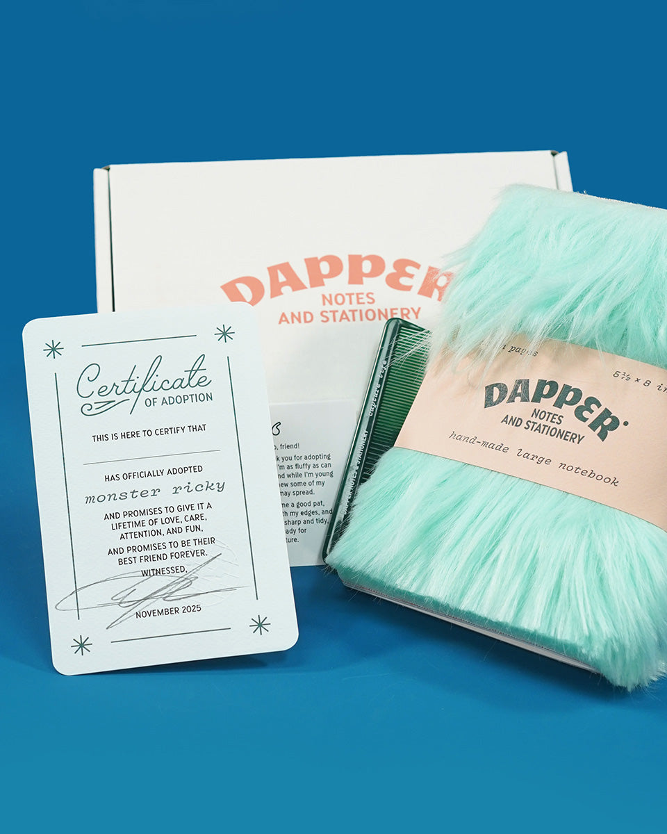 I'm so happy to bring back a new Little Monsters edition. These notebooks are the fuzziest Dapper Notes with faux fur covers and are so cute and insanely soft and one of my favorite things. No animals were harmed in the making of this incredibly plush notebook, but beware: it may shed a wee bit.