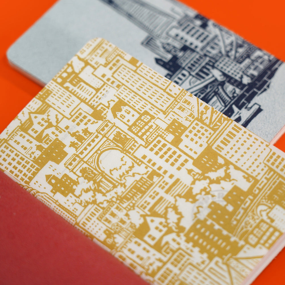 Dylan's cityscape pattern came out so nice, we decided to bring it into the notebook's packaging. The box is still in the classic Dapper Notes, this time with offset printing on a 14pt stock, and with colors and illustrations to match the notebook inside.