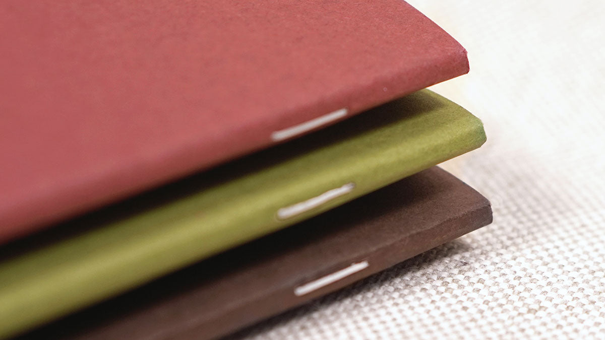 The regular Dapper Notes you know and love are made with a double-cloth cover, contain an extra decorative endsheet, and are hand-sewn with a wax thread finish. Kraft series notebooks have the same smooth paper inside, and unlike their cloth-covered siblings are saddle stitched (stapled) over cover stock.