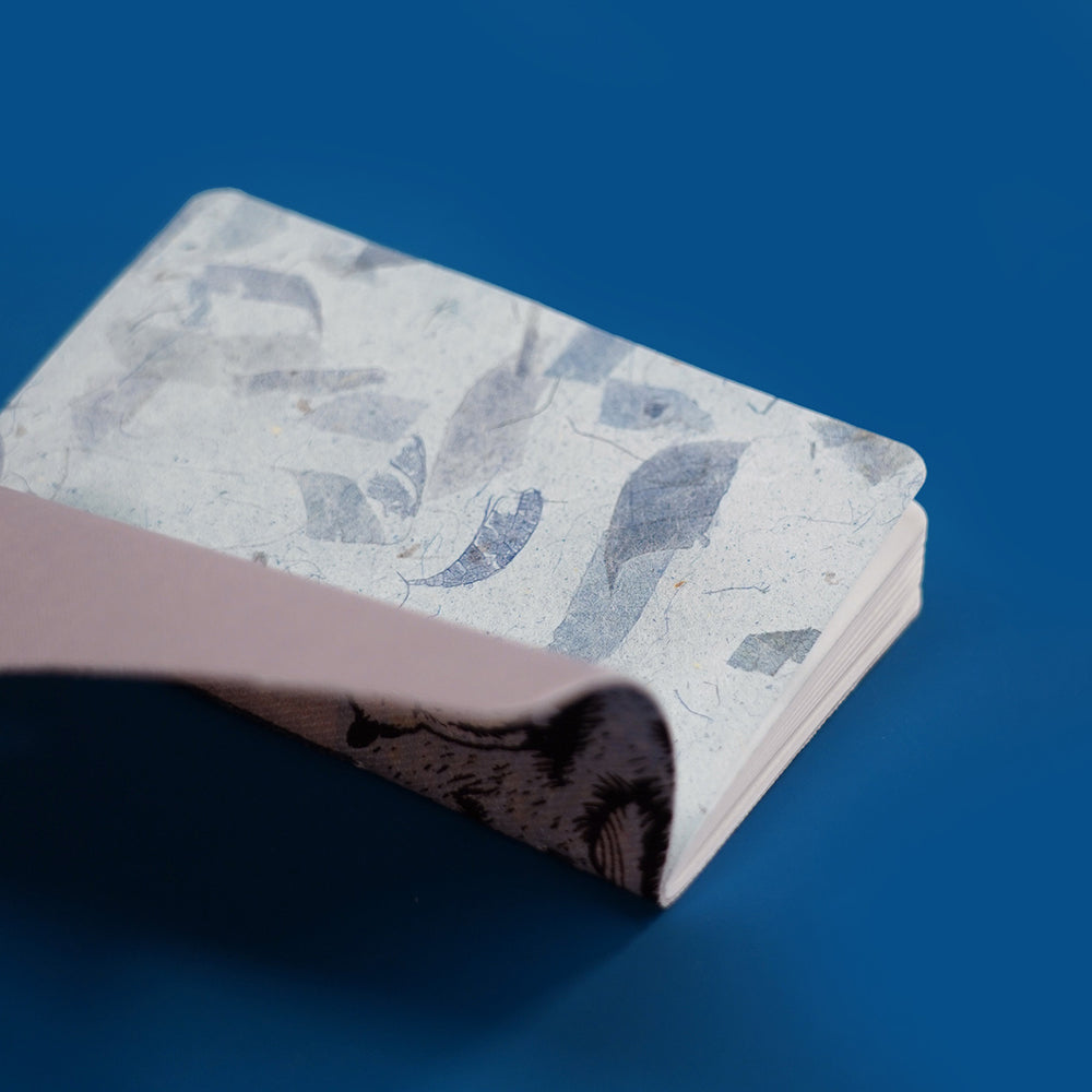 To echo Frankie's printmaking process, I did something new with the covers where the background colors were being digitally printed, and I screen-printed a single dark layer on top. The effect is striking in its contrast, and as screenprinting always does, it creates a nice texture and sensory experience. Inside you'll find delicate purple and blue hues that match the tones and some near-hidden linocut elements from the cover design.