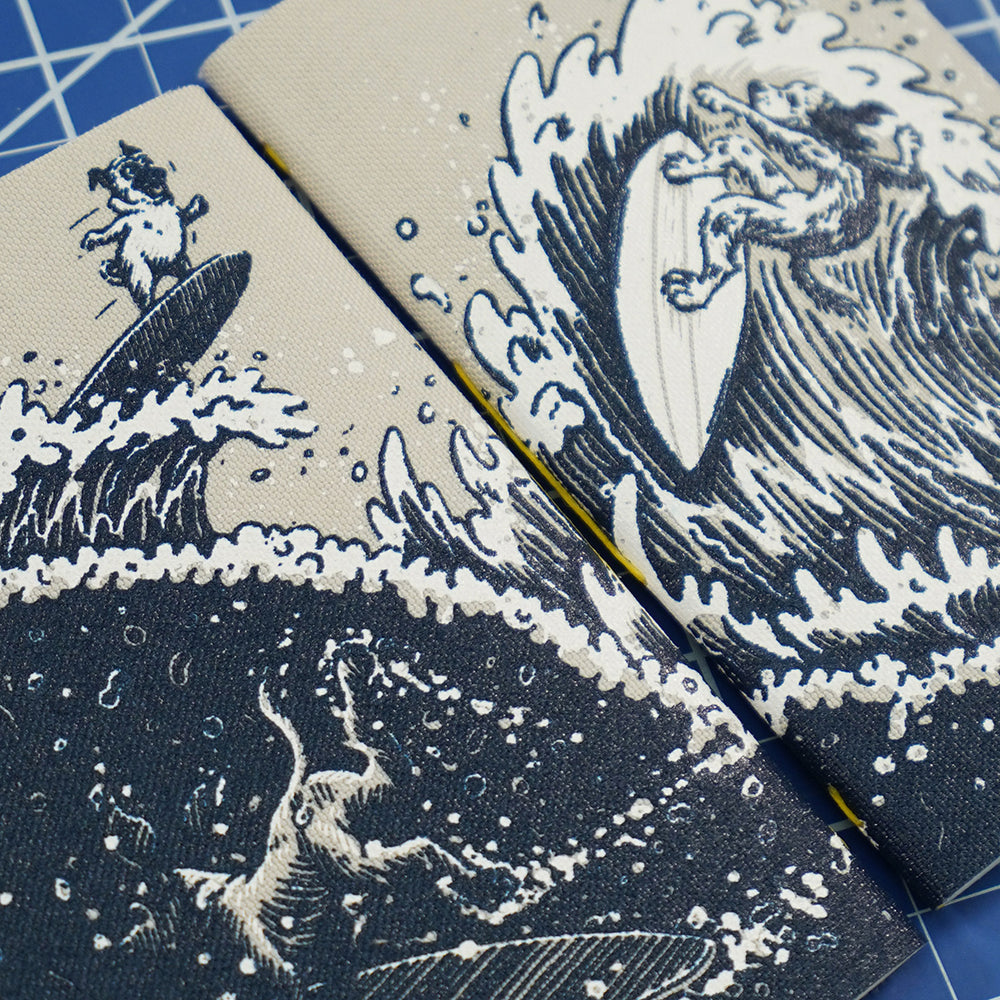 When Dylan started screen printing the 58th Bookhead Club covers, the first few sheets of fabric came out with a print that can only be described as "mushy". The blue ink was bleeding too much and the design lost a bit of its detail.