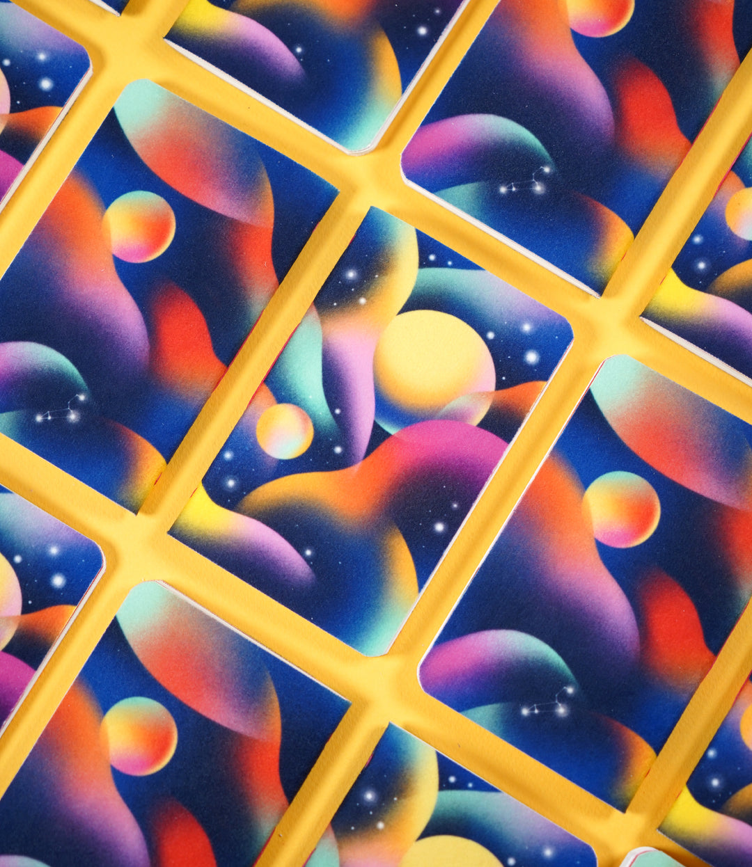 This collaboration is no different, and was designed by Emma Zhang whose work is transportive. Emma - also known as Moonyah Studios - is a psychic artist who creates bright and often geometric illustrations with soft edges that are absolutely stunning.
