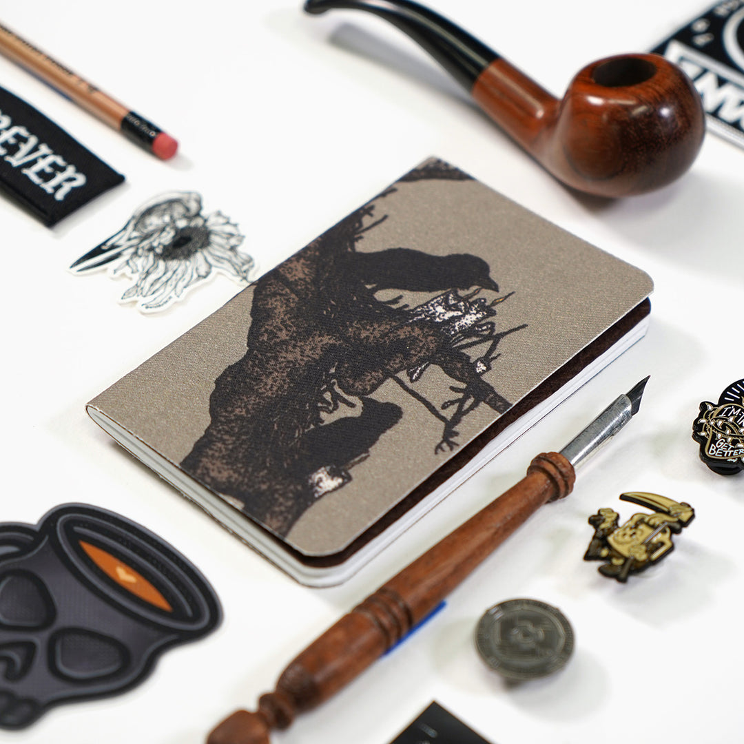 Another design by Steve Kwasniewski is included as a black and white sticker with every notebook, so you can enjoy even more of his detailed stippling work.