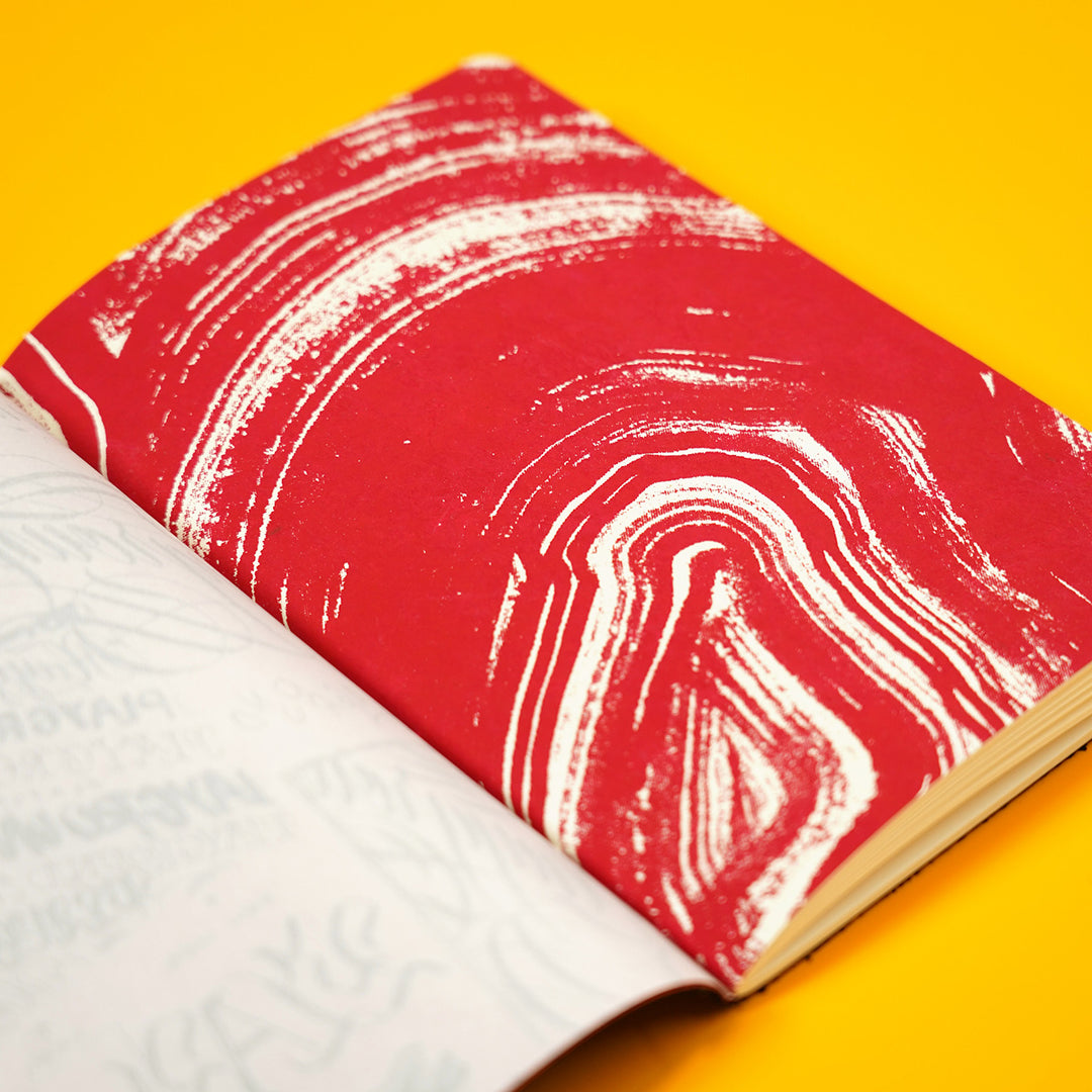 Since I'm now making and printing packaging for the large notebooks, the ink for Playground Sketchbook's packaging is red, to coordinate with the colors found inside